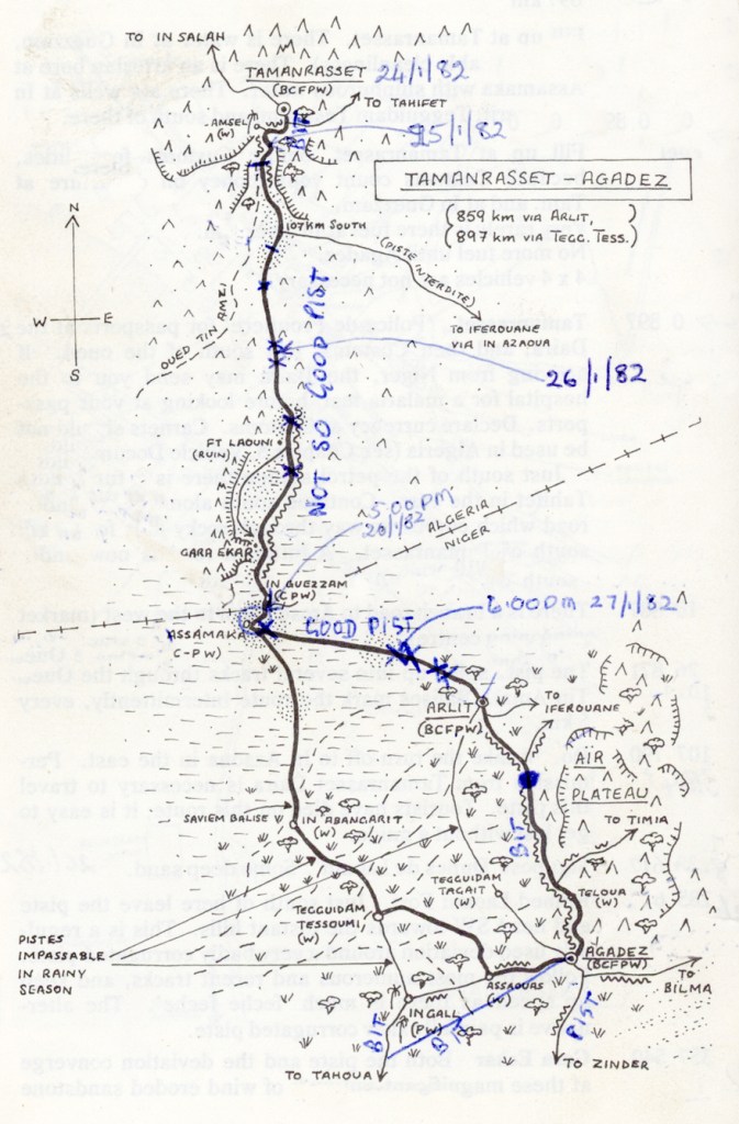 We have been traveling with these two Swiss couples ever since. They are nice friendly people, and all help each other. One couple have a Mercedes Benz Unimog which is a 7 tonne, 4 wheel drive, short wheelbase military-type vehicle which has at least 0.5 meter ground clearance. It is ideal for trans-Sahara travel except for the high fuel consumption: about 4 mpg for the petrol version and 12-14 mpg in the sand with diesel. They cost 135,000 Deutsche Mark new for the chassis only but he got his with a 4 tonne caravan conversion. The owner, Hubie, is very kind-hearted, ‘sehr lustig’ (enthusiastic) and a lot of fun.