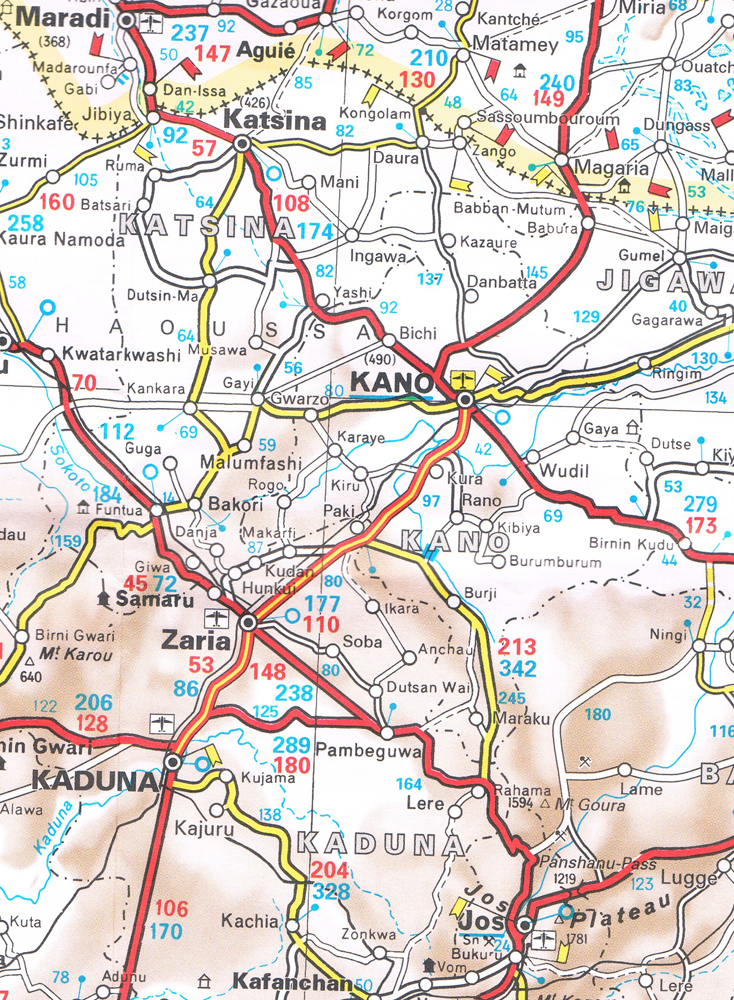 It is rather dangerous driving through the villages because people, children and animals are liable to run in front of you. If you kill one of them, they assume it was deliberate and attack you with machetes, killing the driver and possibly the passengers too. They all carry these big knives, even the small children. They also often carry spears, bow and arrows or slingshots. None-the-less, everyone drives like madmen, including African, Arab and French taxi and truck drivers. But they are not as bad here as in Niger and Nigeria. Apparently the drivers are often drunk and are very frequently killed in numerous crashes – either head-on collisions during overtaking or failing to take corners. Back in Nigeria, on one bad winding stretch, we saw a rolled, burned out petrol tanker on nearly every corner. Life is cheap in Africa.